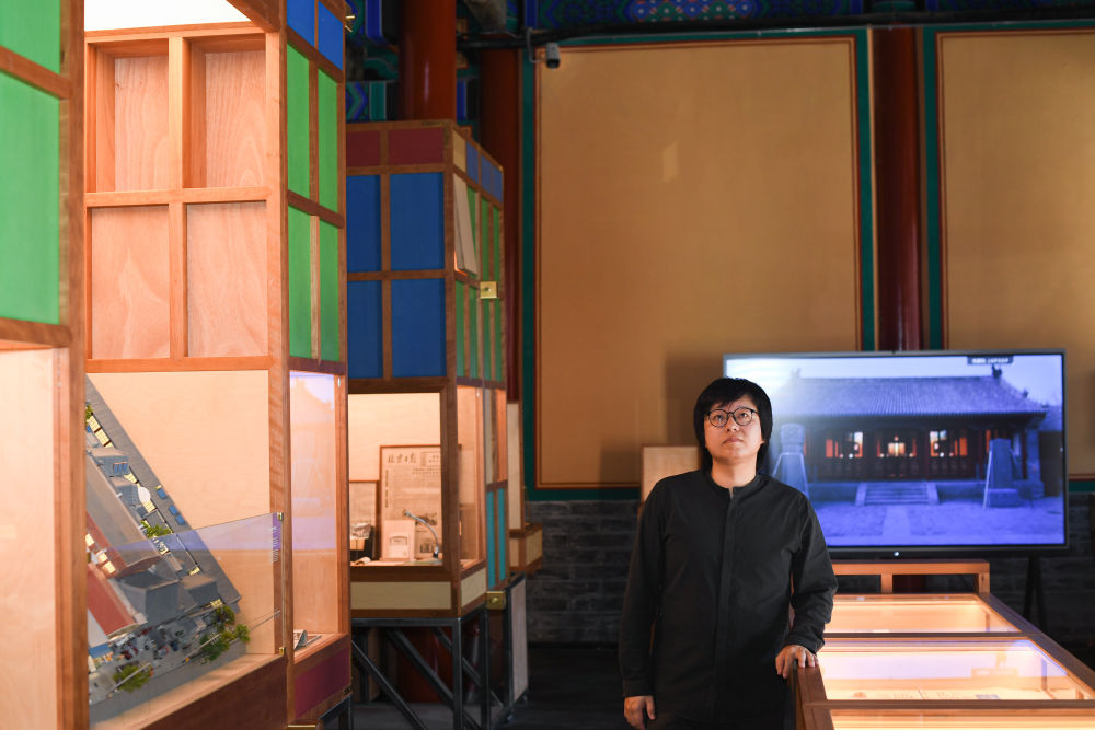 朱起鹏在《宏恩观:一座北京庙宇的故事》展厅内(7月19日摄)。