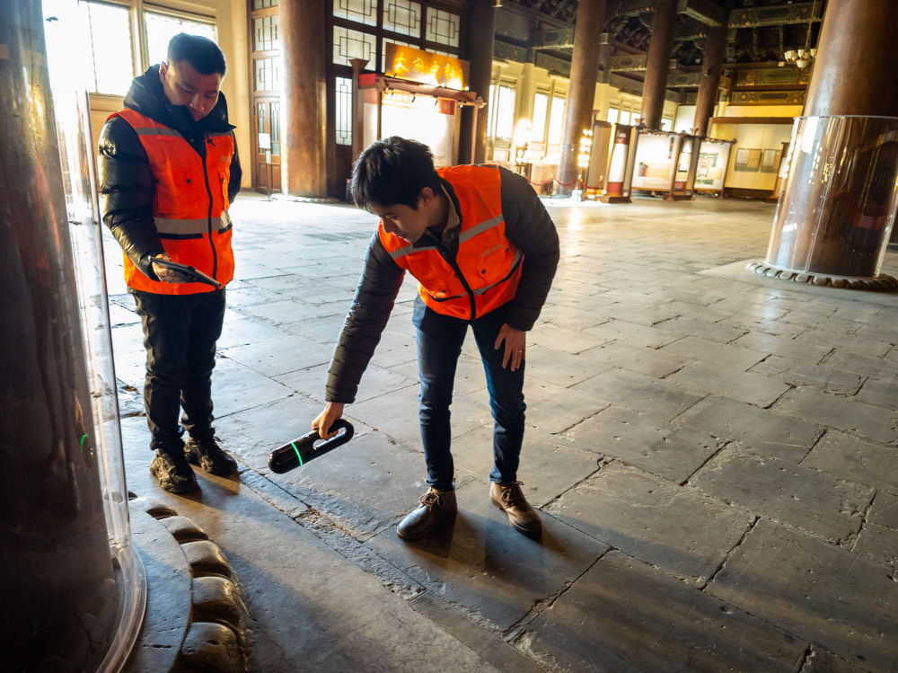 北京市测绘设计研究院团队在太庙进行测绘(2023年2月19日摄)。