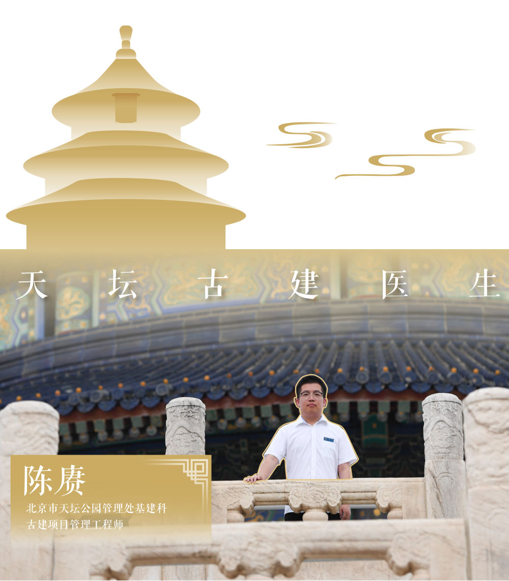 北京市天坛公园管理处基建科古建项目管理工程师陈赓是一名年轻的“古建医生”。在天坛公园,他负责古建的日常巡查、保养和维护,保证古建“延年益寿”。对从小喜欢传统建筑的他来说,这样的工作充满趣味。
