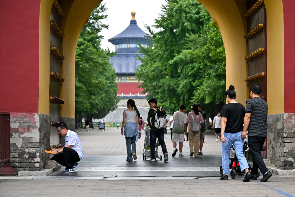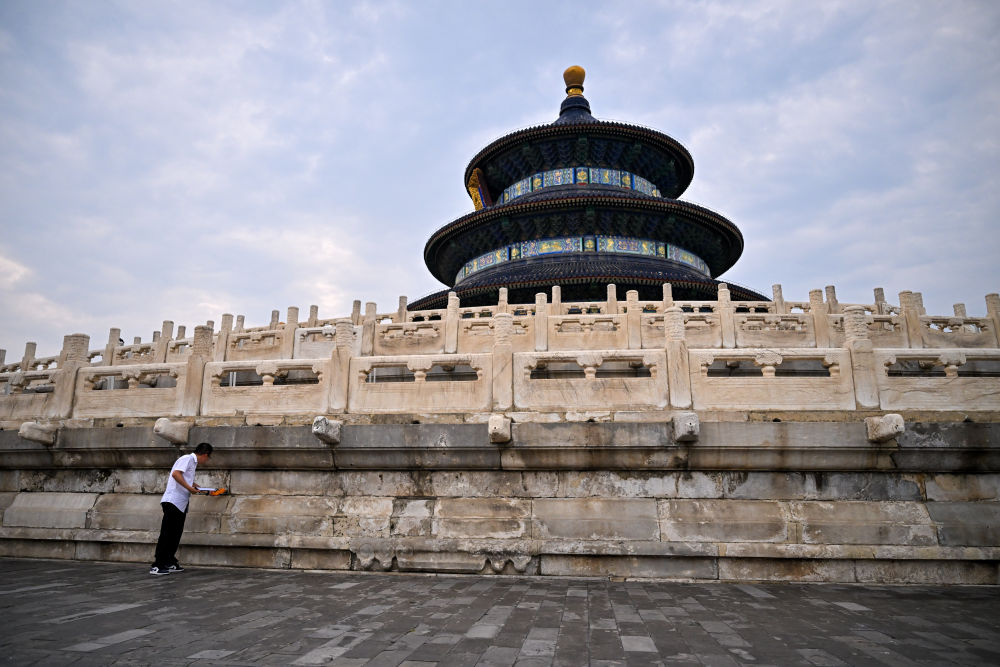 陈赓在天坛祈年殿古建群内进行巡检(7月19日摄)。