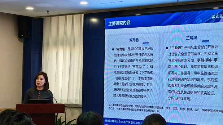 自然资源部地图技术审查中心业务管理处处长、正高级工程师陈会仙做了《“车路云一体化” 应用试点地理信息安全防控建设指南》的报告。报告围绕 “车路云一体化” 应用试点建设,系统梳理了现有地理信息安全相关政策法规要求,明确了试点城市自然资源主管部门的管理职责与工作重点。同时,针对数据处理企业侧,清晰界定了地理信息数据的安全管控边界、具体要求及实施路径,为新型交通基础设施的安全与发展统筹提供了清晰路径。