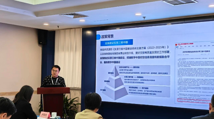 银川市勘察测绘院技术质检部主任、高级工程师郑佳做了《数字孪生・AI 赋能 —— 银川市新一代城市三维底座与场景构建》的报告。作为银川市学术技术带头人,郑佳结合自身多年新型基础测绘工作经验,详细介绍了融合倾斜摄影、激光扫描、InSAR 监测等多源技术的数字孪生模型构建方案。报告聚焦 L1 至 L4 级全精度数字孪生模型体系建设,分享了在技术创新、全域覆盖及典型业务场景应用等方面的实践成效,为中西部城市以数字孪生赋能新型基础测绘提供了可借鉴的实践样板。
