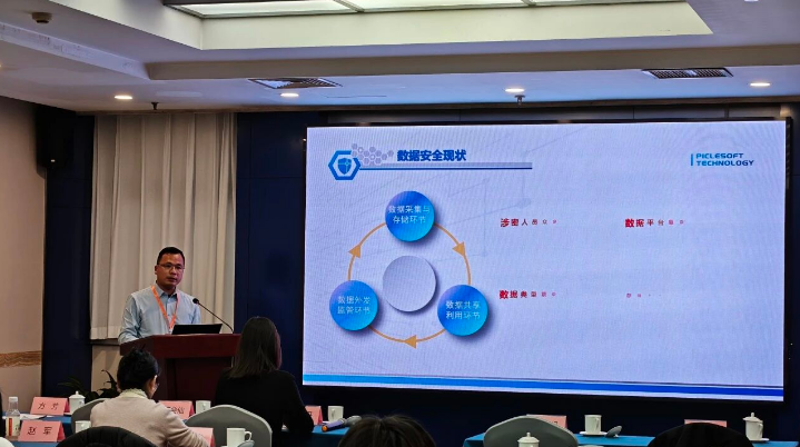 武汉圆周率软件科技有限公司总经理胡志刚做了《地理信息数据安全技术研究及应用》的报告。报告围绕地理信息数据全生命周期安全痛点,系统阐述了安全管控、数字水印、风险监测、数据可信等核心技术的研发与应用情况。其团队自主研发的矢量、栅格及三维数据数字水印算法处于国内领先水平,构建的全生命周期安全防护方案已覆盖全国 29 个省市自治区,为破解多主体协同环境下数据共享与安全平衡难题、推动数据要素合规释放提供了有力技术支撑。