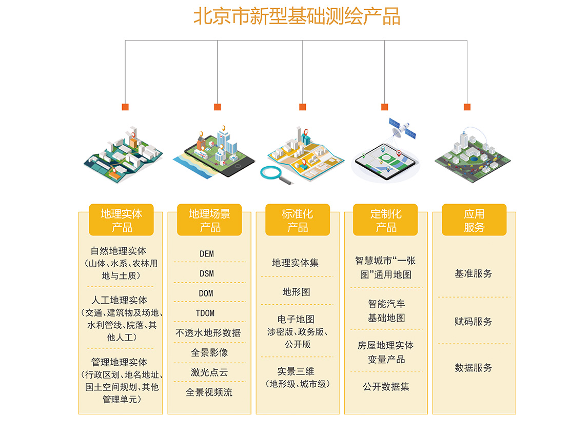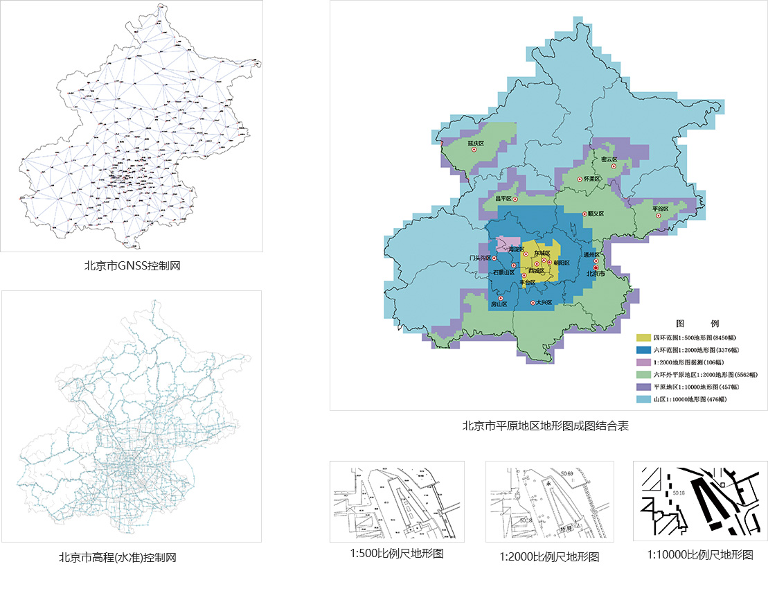 我院承担北京市国土空间基础测绘工作。《中华人民共和国测绘法》中明确了基础测绘是公益性事业,为此我院建立了城市现代化测绘基准体系,定期更新城市基本比例尺地形图(1:500、1:2000、1:10000比例尺地形图)、基础地理信息数据库及数字正射影像图。